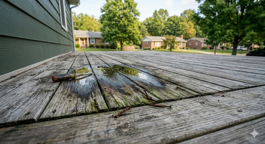 Because of constant humidity, heavy rain, and poor drainage, moisture can build up inside the structure without being visible at first. Many homeowners don’t realize there’s a problem until boards feel soft or the deck starts to move.